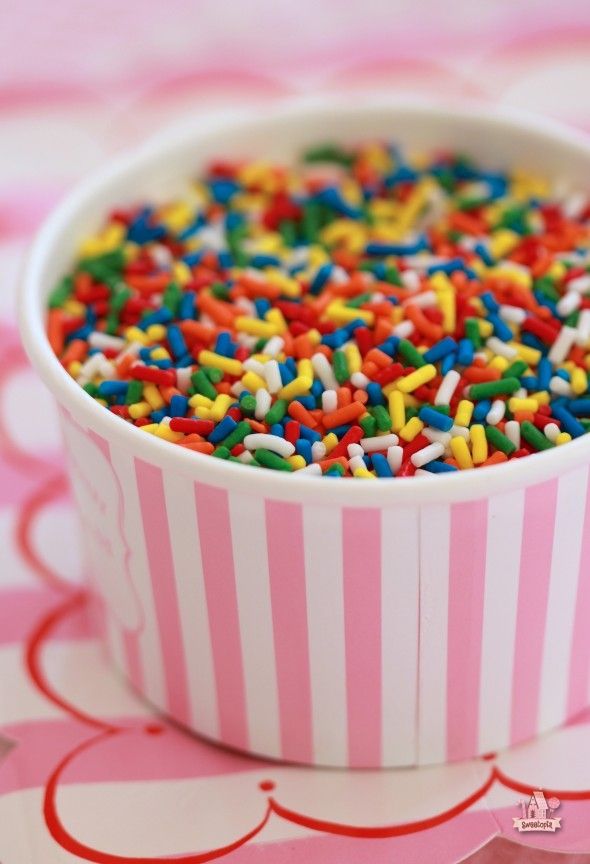 kue original dengan fla vanila dan meses berwarna-warni.