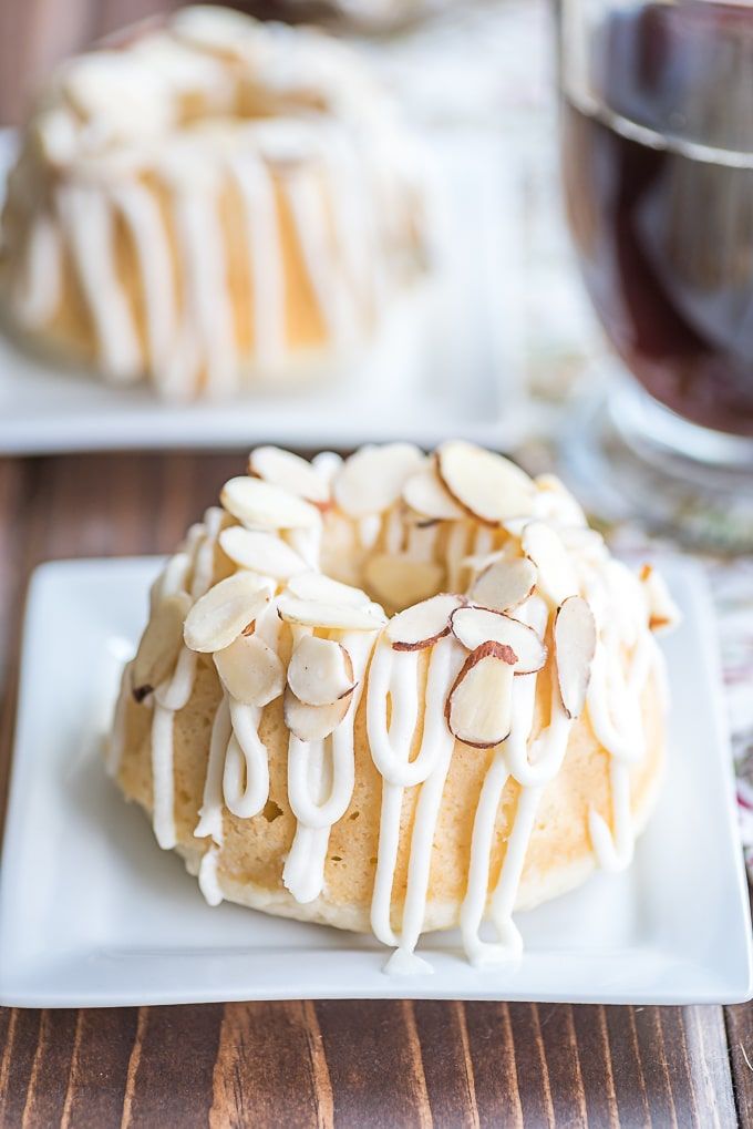 kue original dengan fla vanila diberi potongan almond putih.